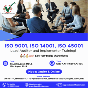 SIS Certifications, a leading provider of management system training and certification services, is excited to announce the launch of its intensive Lead Auditor & Implementer Training program covering three crucial ISO standards: ISO 9001 (Quality Management), ISO 14001 (Environmental Management), and ISO 45001 (Occupational Health and Safety Management Systems).